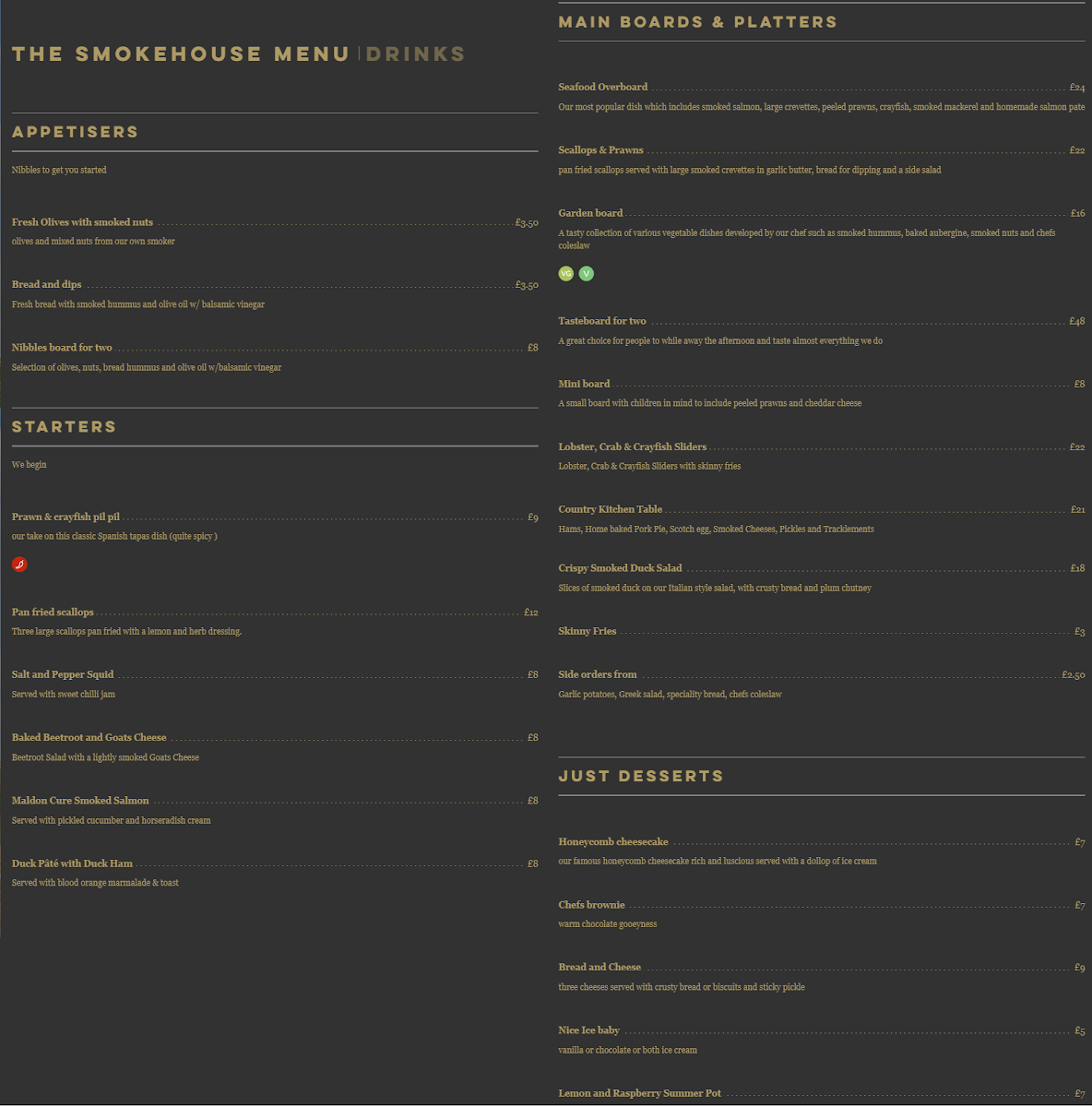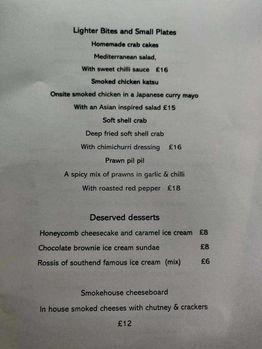 The menu at The Maldon Smokehouse leaves a lasting impression with its confident focus on fresh, well-prepared seafood and generous sharing platters that highlight both quality and variety. Signature offerings like the Seafood Overboard and Oysters on the Half Shell showcase the kitchen’s commitment to freshness, while the richly flavored Prawn and Scallops in Garlicky Broth and Toast delivers a comforting yet refined touch. For those seeking a broader tasting experience, the Smokehouse Deli Board and Country Kitchen Table provide abundant selections that are ideal for groups, combining smoked specialties and hearty accompaniments. Meanwhile, the intriguingly named Pickled Herrings Smoked Nuts and Cockles Delish adds a bold, traditional flair that reflects the restaurant’s coastal character. Altogether, the menu strikes a satisfying balance between indulgence and authenticity, making it a memorable destination for seafood enthusiasts.